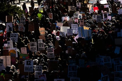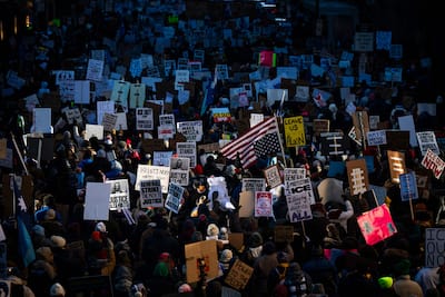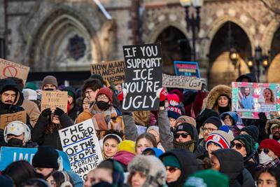 Apesar do destacamento ainda pesado de agentes federais que deverá representar o giro do parafuso, milhares de manifestantes saíram às ruas na sexta-feira sob cartazes hostis tanto ao próprio Donald Trump como ao ICE, a força policial federal de imigração que destacou ainda mais as tensões.