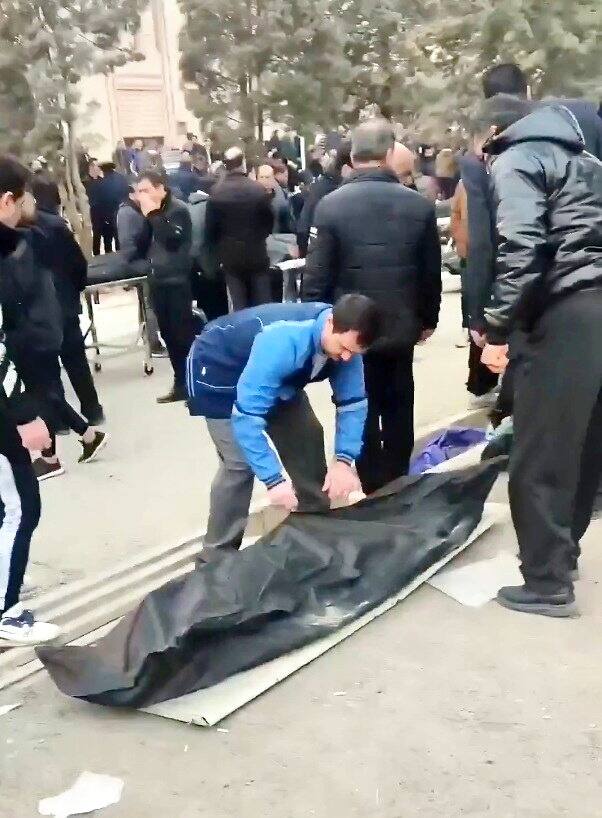 Um vídeo cuja localização foi confirmada pela AFP no domingo, 11 de janeiro de 2026, mostra dezenas de corpos empilhados à porta de uma morgue no sul de Teerão, que ONG de defesa dos direitos humanos descrevem como vítimas da repressão dos protestos no Irão. X Captura de tela de um vídeo de @TabZLIVE
