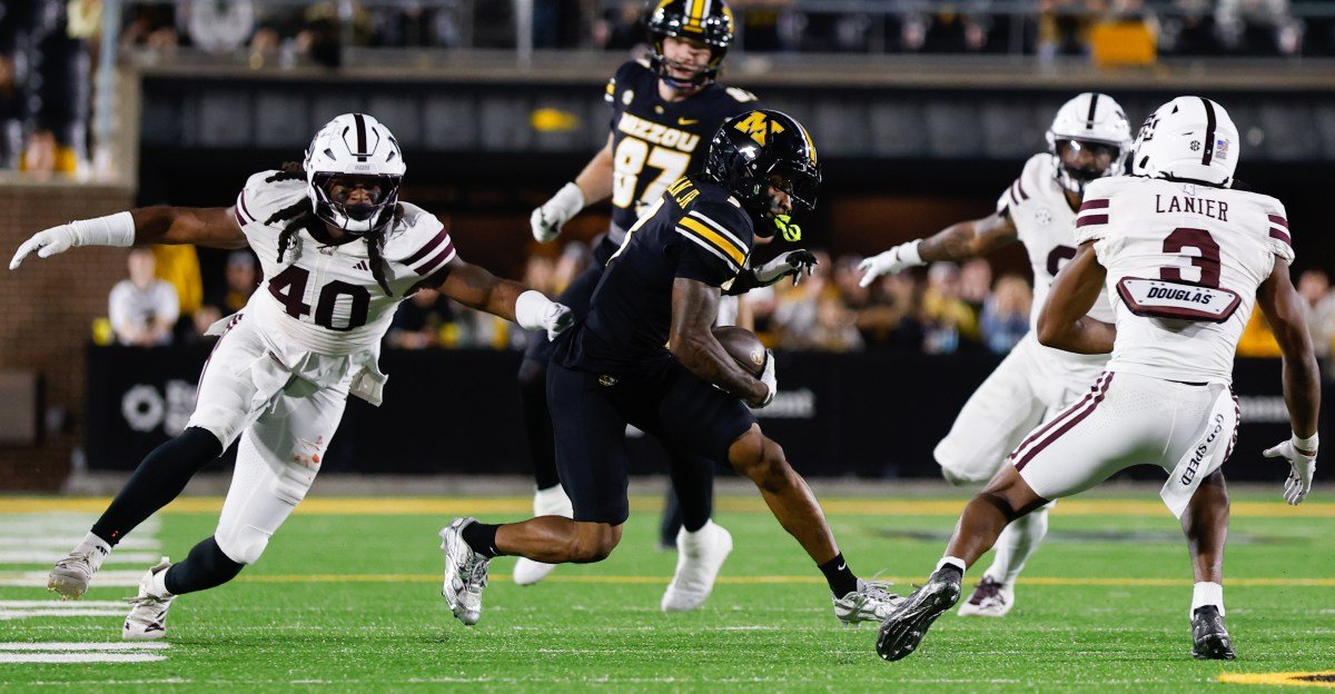 - Agora são 2º e 5º. Mais uma vez, Missouri gosta de dirigir em descidas normais. Eles fazem isso? Negativo. Josh Manning se move do lado esquerdo/extremo do campo para o lado curto/direito enquanto Pribula rasga uma tela externa para Donovan Olugbode. Há uma confusão de DBs no lado curto que ele não consegue passar, apesar de alguns bons bloqueios de Manning. Boa ideia, esquema ruim (Kirby adora ir para o lado mais curto do campo), boa execução, mas consegue apenas 60% das jardas necessárias, então não é uma jogada bem-sucedida aqui.