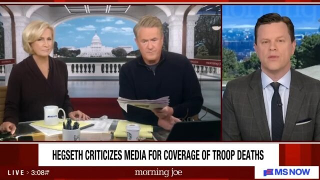 A co-apresentadora de “Morning Joe”, Mika Brzezinski, juntou-se à discussão, dizendo que os comentários de Hegseth foram “patéticos, mas também embaraçosos”. Enquanto isso, ela, Scarborough e o co-âncora Willie Geist aplaudiram o presidente do Estado-Maior Conjunto, Dan Caine, por se esforçar na mesma entrevista coletiva para nomear e homenagear os soldados que morreram esta semana.