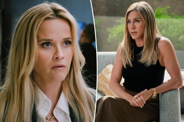 Reese Witherspoon e Jennifer Aniston em “The Morning Show”. Erin Simkin