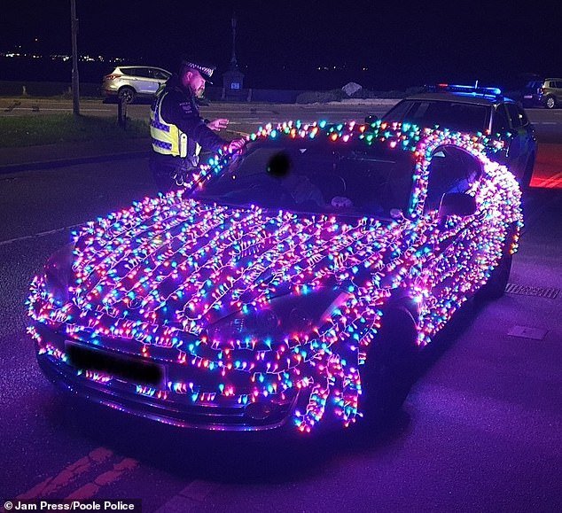 O motorista que cobriu o carro sob as luzes de Natal foi avisado pela polícia; Os motoristas foram avisados de que poderiam acabar na “lista de travessuras do Papai Noel”.