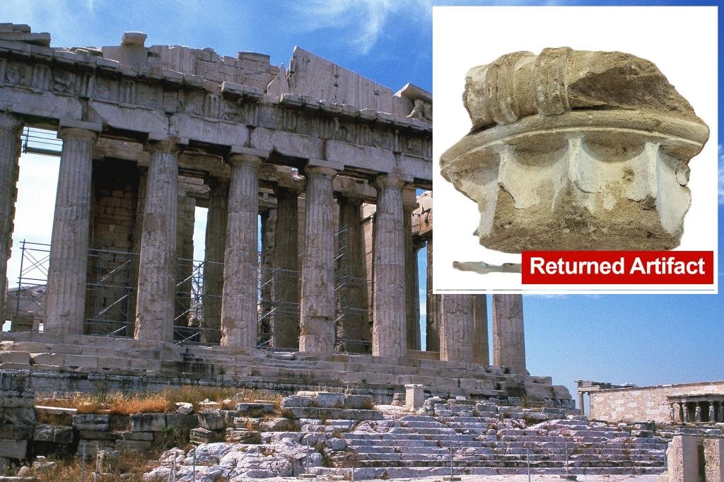 O fragmento recentemente devolvido será preservado e exibido na antiga Olímpia, afirmam as autoridades.