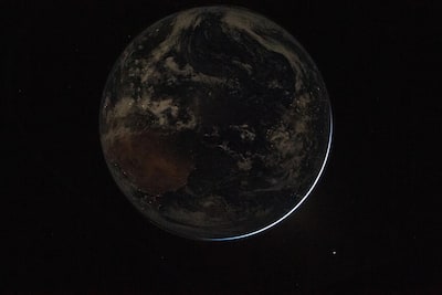 Uma das imagens mostra o planeta azul totalmente iluminado, destacando contrastes de cores e revelando a aurora boreal turquesa.