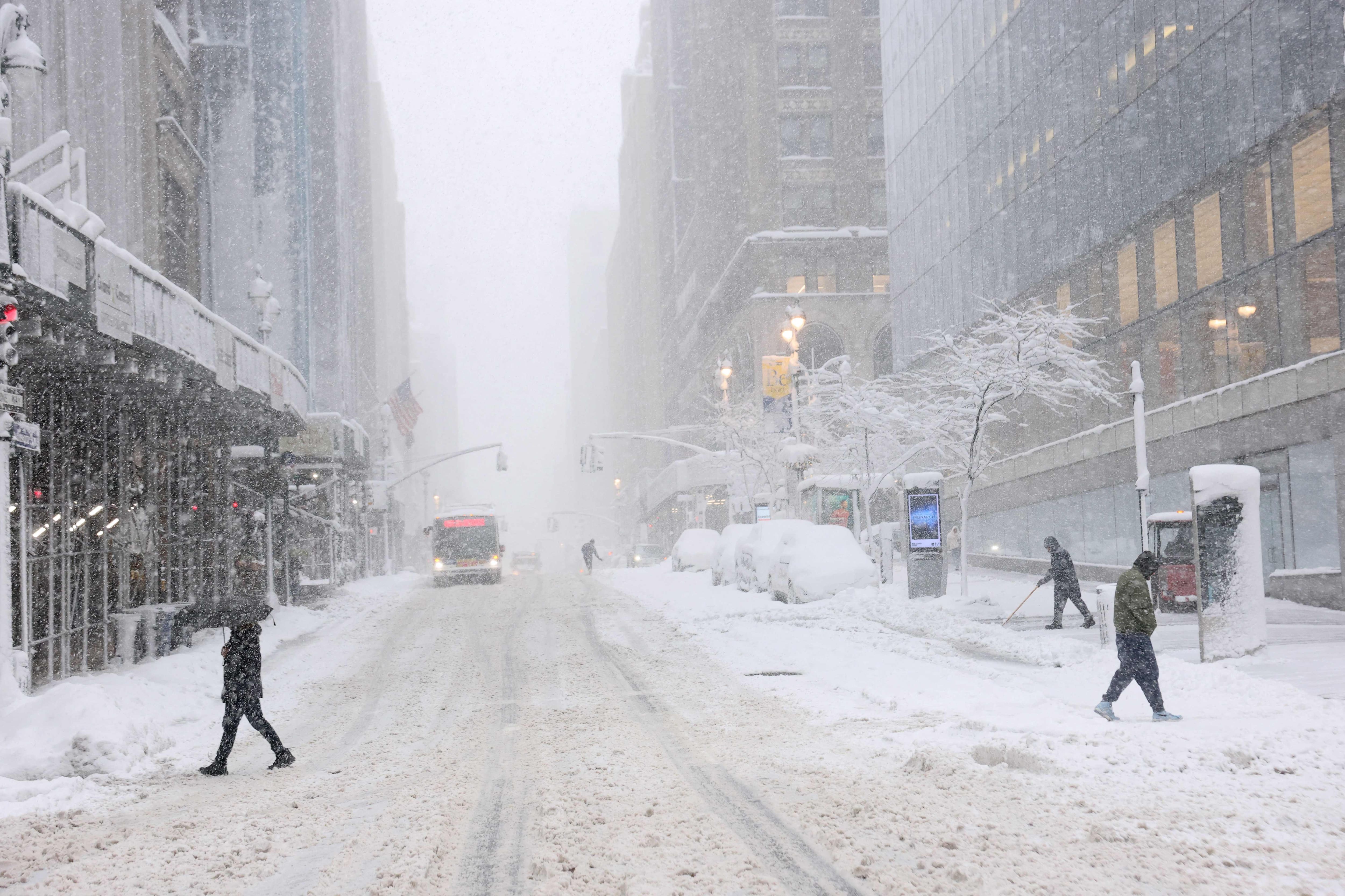 Uma queda de poeira de 40 cm foi vista no Central Park, a queda de neve mais forte desde 2021. Esperava-se que a tempestade se intensificasse à tarde.