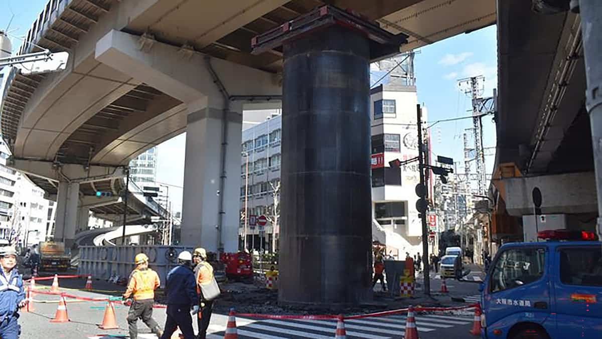 NAS FOTOS | “Saindo do chão”: um misterioso cilindro gigante atrapalha o trânsito no Japão