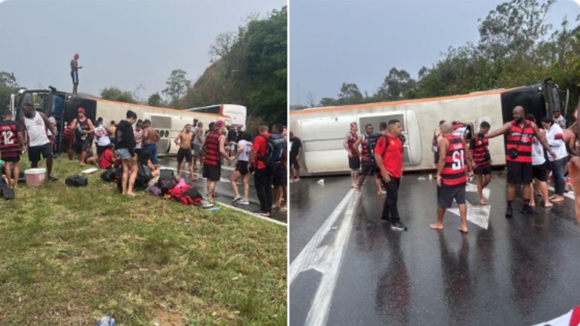 Um ônibus que transportava Torcedores do Flamengo a caminho de Buenos Aires capotou na segunda-feira em uma rodovia no Brasil, deixando um saldo de pelo menos 16 feridos, dois deles gravemente. A torcida viajou para assistir ao jogo de volta contra o Racing, pela semifinal da Copa Libertadores.