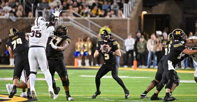 Continuar com a dependência do time no jogo corrido parece ser a estratégia provável para o MU contra a Virgínia, mas Drinkwitz espera fazer a transição para um ataque mais equilibrado a longo prazo por meio de um ataque de passe melhorado. O jogo de passes de Mizzou diminuiu visivelmente desde 2023, quando a eficiência aérea dos Tigers os ajudou a uma temporada de vitórias no Cotton Bowl – uma temporada que os teria colocado no College Football Playoff em sua forma atual.