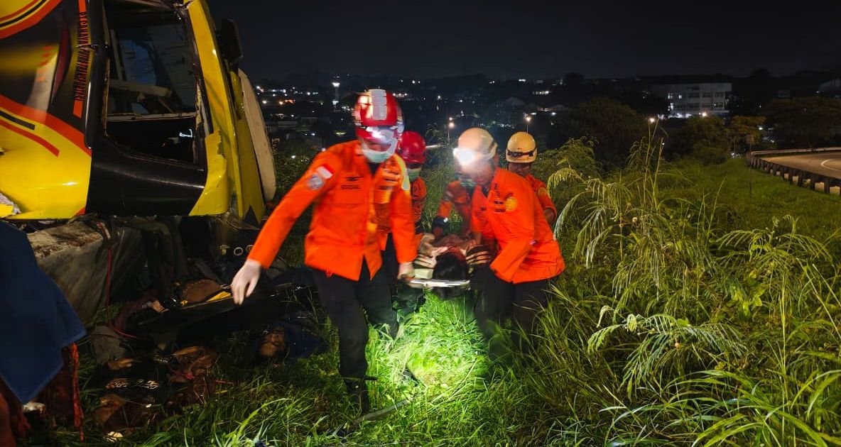 O chefe do departamento de busca e resgate, Budiono, que atende pelo mesmo nome como muitos indonésios, disse que o ônibus que transportava 34 pessoas perdeu o controle na estrada com pedágio, bateu em uma barreira de concreto e caiu de lado.