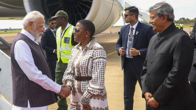 “Ele também pediu-lhes que aumentassem a popularidade da cultura indiana entre o povo da África do Sul, incluindo práticas como Yoga e Ayurveda”, acrescentou. “O Primeiro-Ministro enfatizou o seu papel como uma ‘ponte viva’ entre os dois países. Ele apreciou a contribuição dos mais de 1,7 milhões de pessoas da diáspora indiana na África do Sul no cultivo dos laços históricos de amizade entre a Índia e a África do Sul.” Ministério das Relações Exteriores O porta-voz Randhir Jaiswal acrescentou em comunicado ao X que Modi também elogiou os esforços para ajudar os jovens a se conectarem com o legado de Mahatma Gandhi e Nelson Mandela. O Primeiro Ministro também recebeu Shree Anna ou ‘Kalash’ de milho da Índia e da África do Sul da Missão Chinmaya.