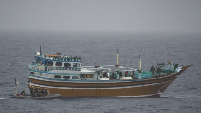 Marinheiros paquistaneses embarcaram no primeiro veleiro no sábado e “apreenderam mais de duas toneladas de metanfetamina cristal no valor estimado de US$ 822.400.000”, segundo o comunicado de imprensa.