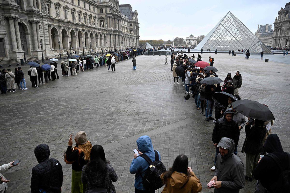 Os visitantes ficam tão tristes quanto os céus de Paris quando descobrem que o Museu do Louvre permanecerá fechado durante todo o dia de segunda-feira, um dia após o espetacular roubo de joias de valor inestimável.