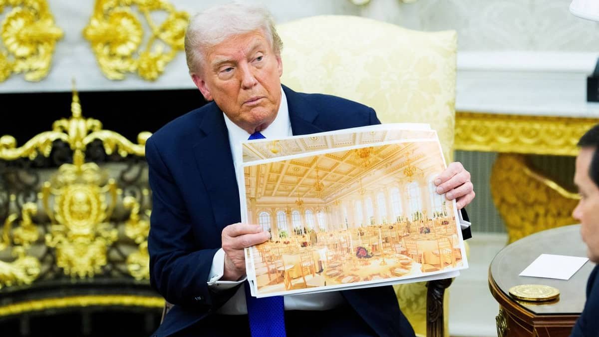 Em Outubro, o presidente republicano mandou demolir uma ala inteira da Casa Branca para construir este salão de baile, que deverá ter capacidade para receber até 1.000 pessoas para diversas recepções e jantares em homenagem a dignitários estrangeiros.