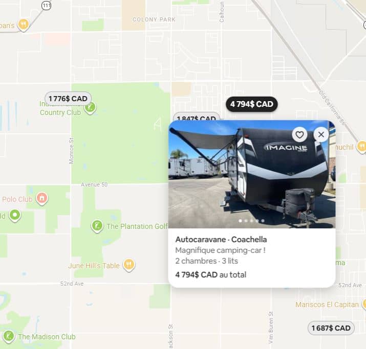 Um local para trailers no local custa US$ 84 por noite, enquanto uma barraca pré-arremessada pode ser alugada por US$ 1.257.