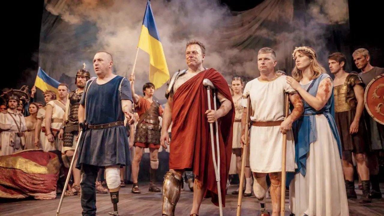 Sentados em círculo na véspera da noite de estreia, veteranos de guerra ucranianos e estudantes de teatro se revezavam na leitura de versos de um roteiro que lhes chegou ao longo dos séculos. Os atores (homens e mulheres na faixa dos 20 e 60 anos) incluíam veteranos ucranianos que retornaram do front com amputações, queimaduras graves e perda de visão. Outros suportaram a guerra em casa. Muitos deles nunca haviam pisado no palco antes desta peça.