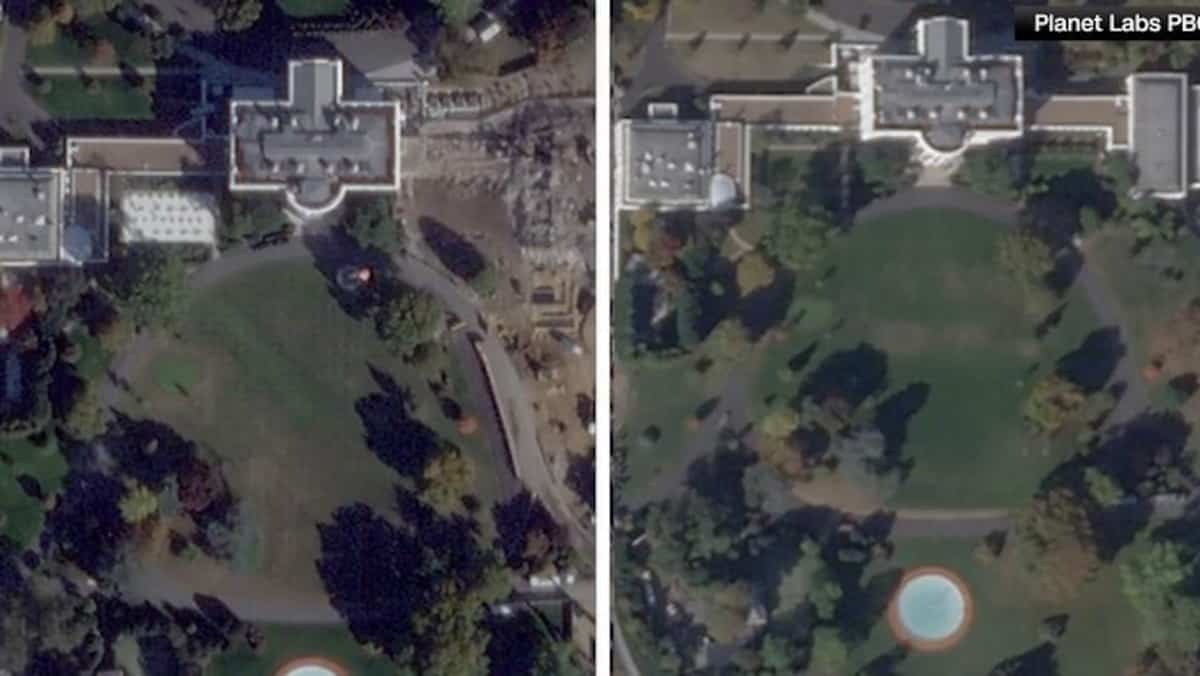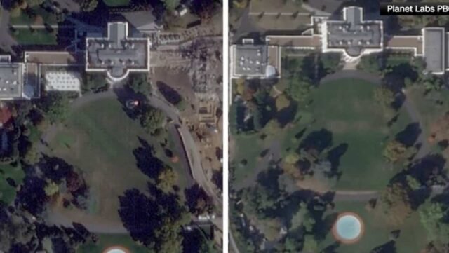 As fotos revelam um grande canteiro de obras que cobre toda a parte leste do complexo presidencial. Os destroços cobrem agora a área onde ficava a ala leste, enquanto a colunata que a ligava à residência executiva está quase desaparecida, segundo imagens publicadas pela CNN.