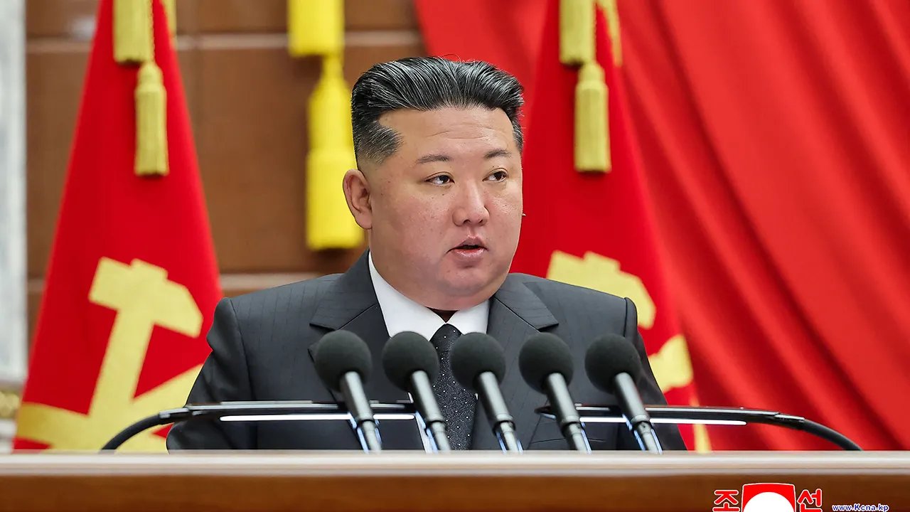 O líder norte-coreano Kim Jong Un faz seus comentários finais na 13ª Reunião da Assembleia Geral do Oitavo Comitê Central do Partido dos Trabalhadores da Coreia, em 10 de dezembro de 2025. (KCNA via KNS/AFP via Getty Images)