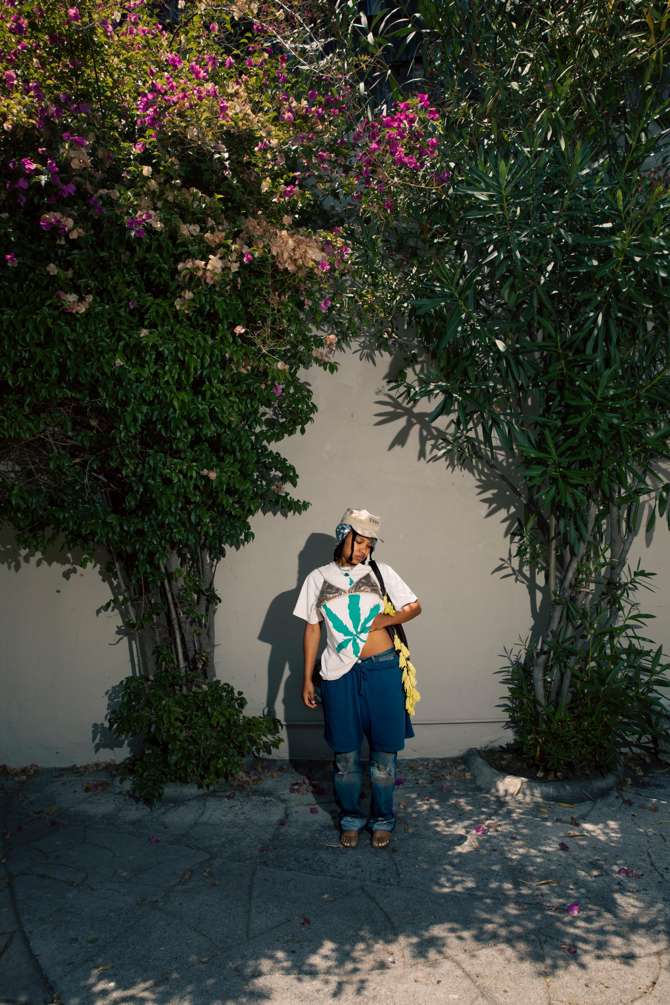Agora, quase um ano depois, nos encontramos novamente – há muito tempo esperado – desta vez em sua nova casa: um estábulo reformado da década de 1920, localizado no coração de Koreatown. A propriedade, que pertencia a um artista, foi transformada em uma colcha de retalhos de chalés e estábulos que abrigam criativos multigeracionais. Sua vizinha, a atriz, tem fala mansa e é gentil. Todo o espaço parece um segredo, um lugar habitado por artistas que permitiram que ele os moldasse.