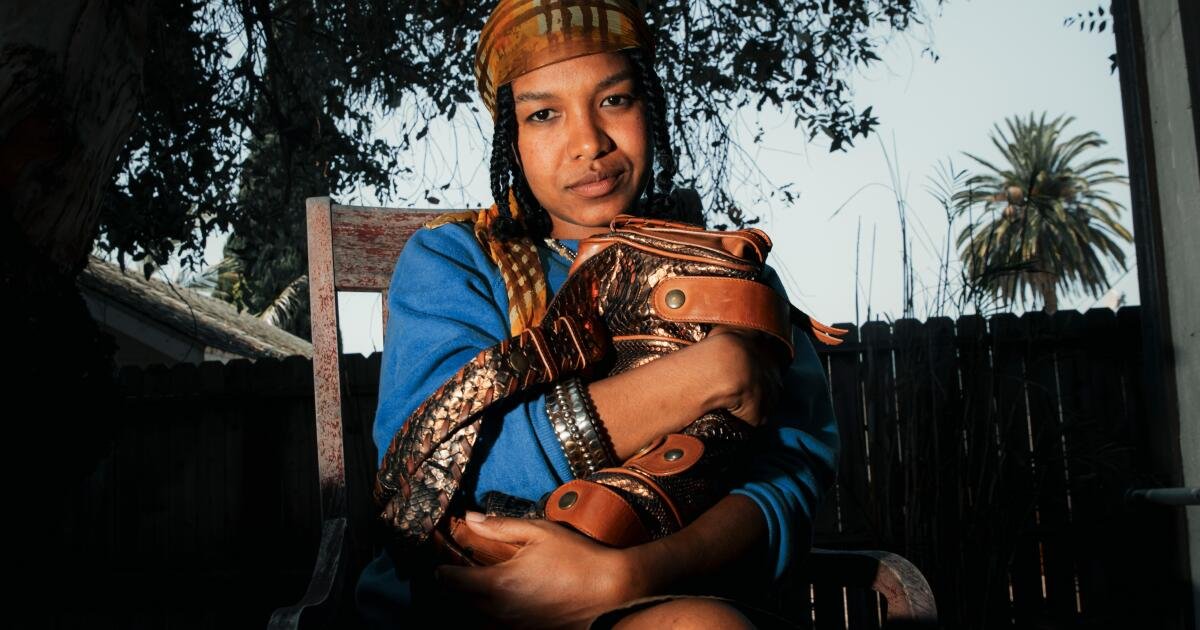 Agora, quase um ano depois, nos encontramos novamente – há muito tempo esperado – desta vez em sua nova casa: um estábulo reformado da década de 1920, localizado no coração de Koreatown. A propriedade, que pertencia a um artista, foi transformada em uma colcha de retalhos de chalés e estábulos que abrigam criativos multigeracionais. Sua vizinha, a atriz, tem fala mansa e é gentil. Todo o espaço parece um segredo, um lugar habitado por artistas que permitiram que ele os moldasse.