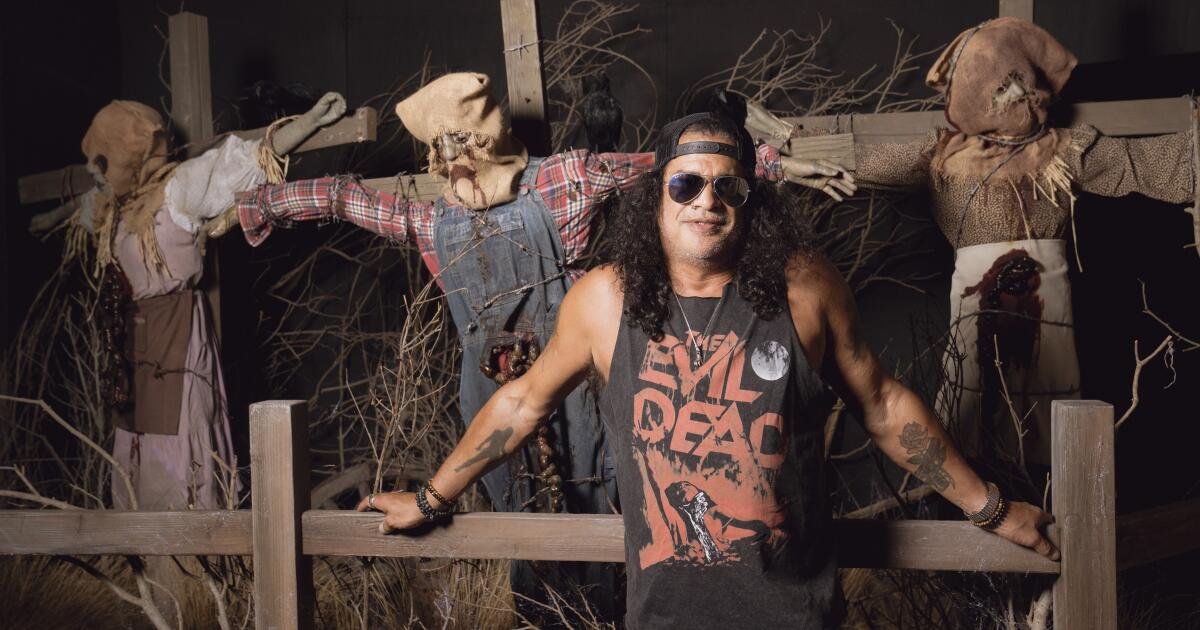 Slash tem um profundo fascínio pelo Universal Studios, evidenciado por seu conhecimento de como o passeio de bonde do parque – oficialmente designado como World Famous Studio Tour – mudou ao longo dos anos. Como um fã de terror de longa data que fala com carinho de assistir filmes dos anos 70 como “The Wicker Man”, “The Omen” e “The Exorcist” com seus pais, Halloween Horror Nights é particularmente caro ao coração de Slash.