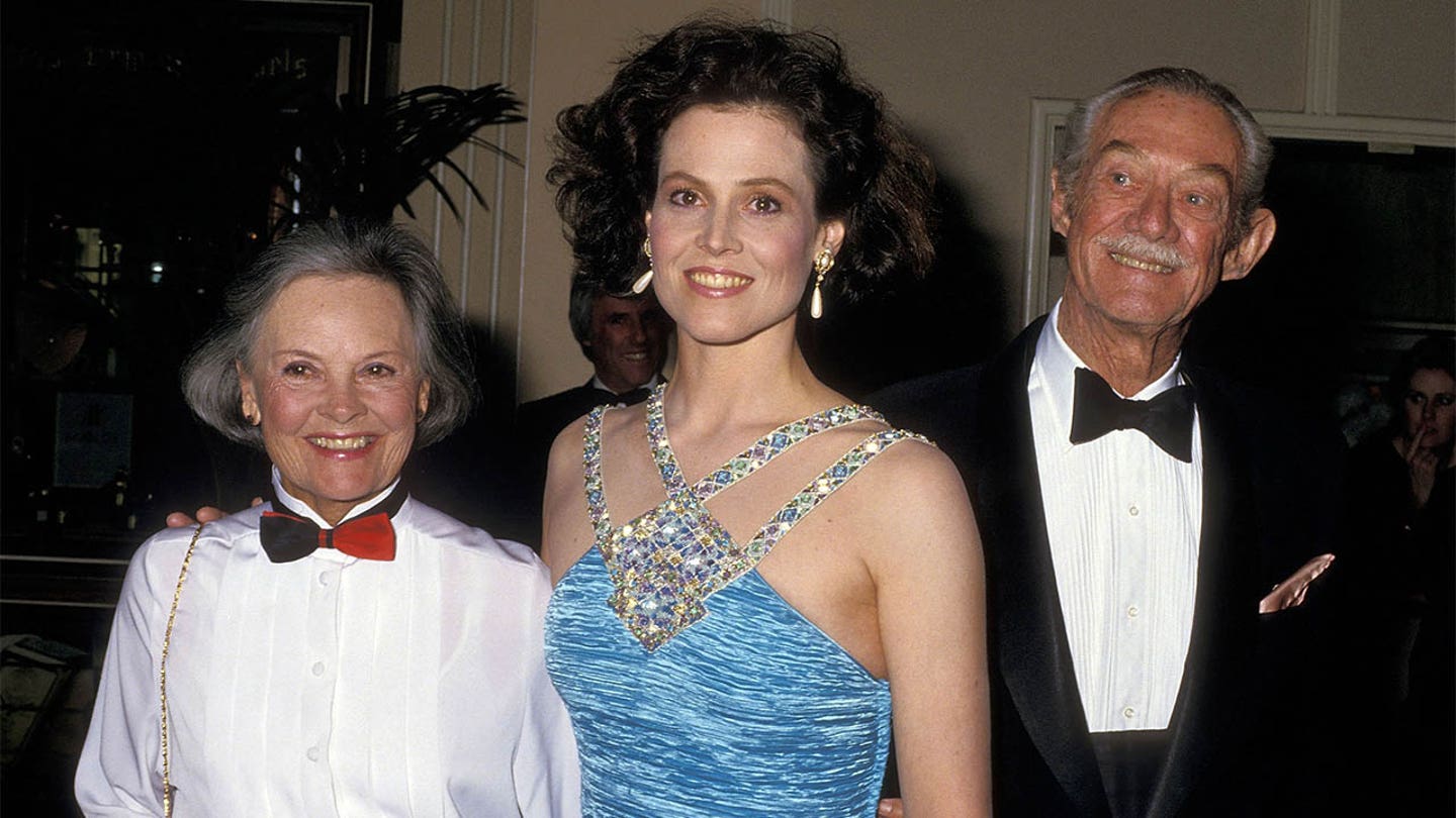 Weaver e seus pais foram vistos no 44º Globo de Ouro Anual em 31 de janeiro de 1987, no Beverly Hilton Hotel em Beverly Hills, Califórnia. (Coleção Ron Galella/Ron Galella via Getty Images)