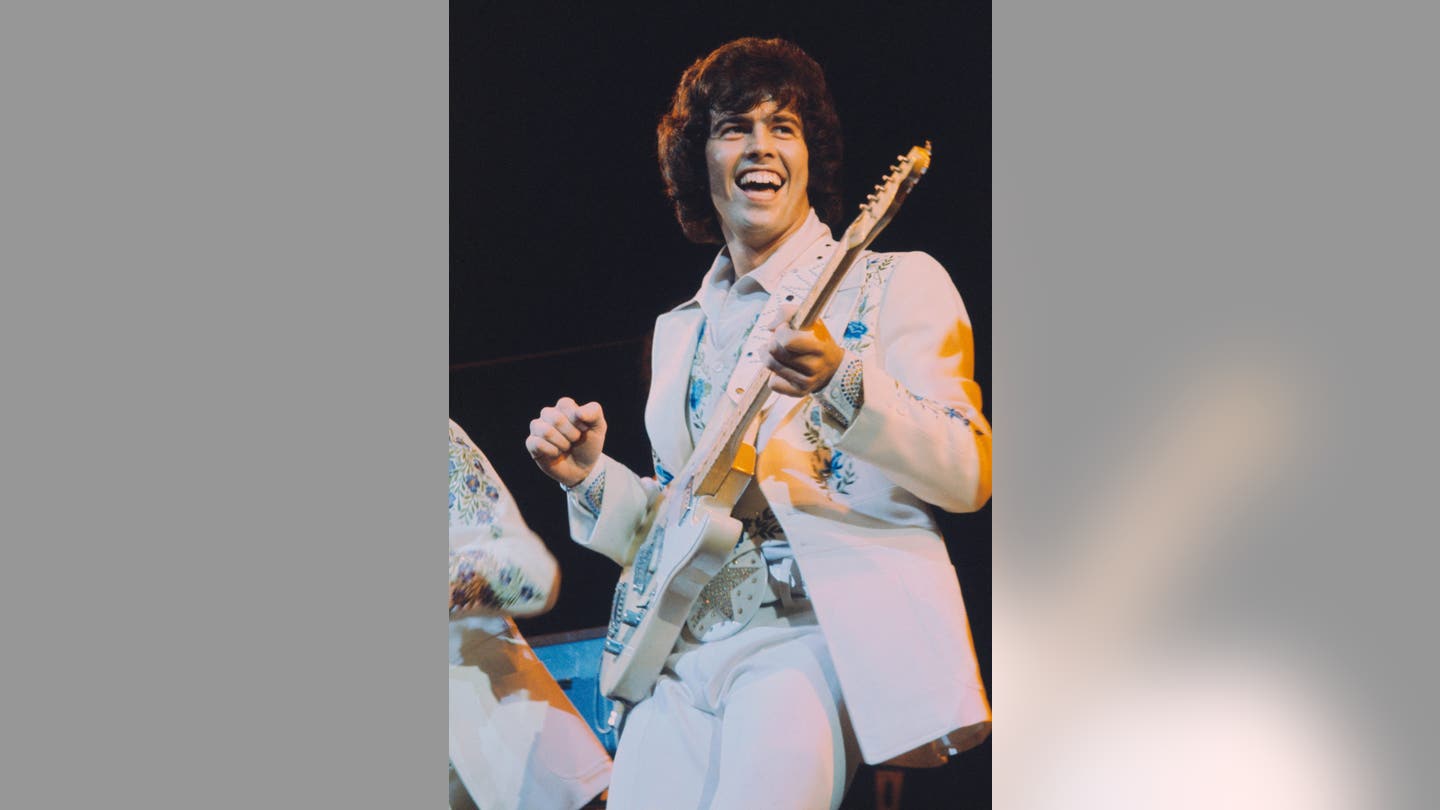 Alan Osmond foi visto se apresentando ao vivo no palco com The Osmonds durante a etapa britânica de sua turnê europeia em outubro de 1973. (Michael Butland/Imagens Getty)