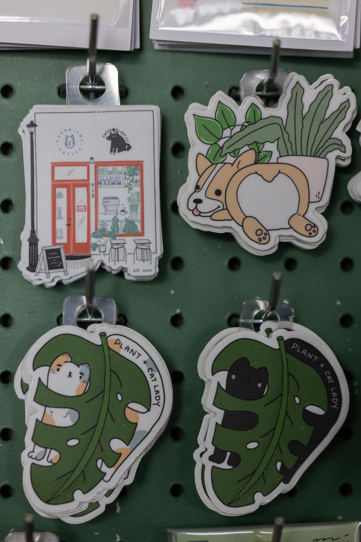 Nimura diz que o junk journaling está alimentando parcialmente a tendência dos adesivos no momento. A Paper Plant vende uma grande variedade de adesivos e também fabrica os seus próprios – um cachorro, por exemplo, usando um chapéu dos Dodgers, ou um homem usando um cachorro como chapéu. “Os pára-choques são para jornalistas e planejadores”, diz Nimura. “Eles têm pequenos adesivos. Servem para um calendário. Você poderia usar um adesivo de sanduíche para almoçar com um amigo.”