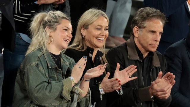 Ben Stiller com sua esposa Christine Taylor e filha Ella em 2024. (Jan Catovi/Getty Images)