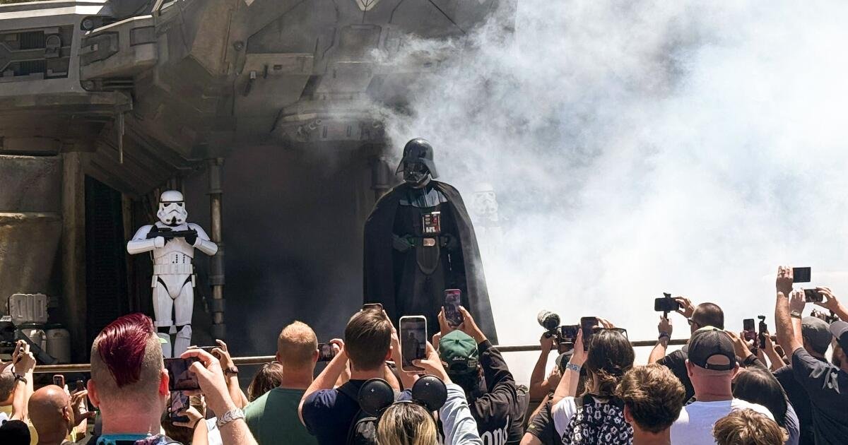 Nem toda multidão aplaudirá e torcerá alegremente por um vilão conhecido e notório. Mas os fãs da Disneylândia certamente irão, como quando Darth Vader pisou em Star Wars: Galaxy’s Edge na manhã de quarta-feira e a multidão explodiu em gritos de aprovação.