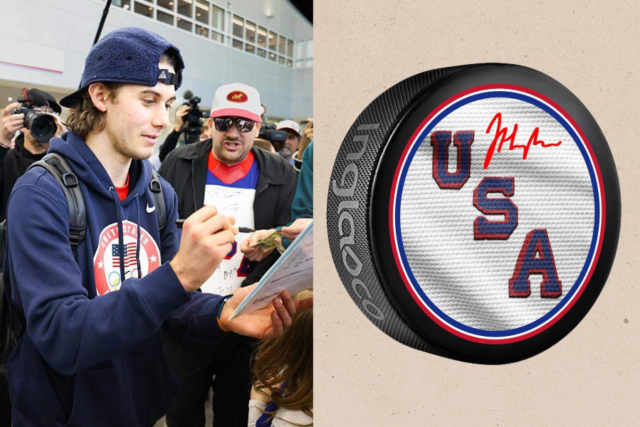 Os fãs também podem comprar um disco de hóquei oficial dos Jogos Olímpicos de Inverno de 2026 autografado pelo irmão de Jack, Quinn, que também participou do jogo pela medalha de ouro.