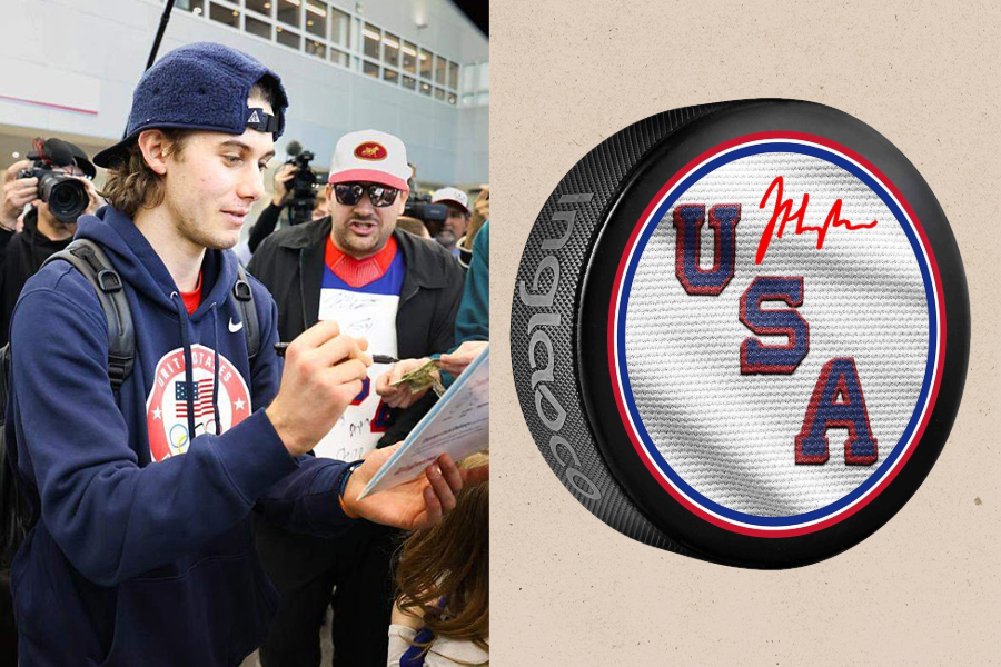 De acordo com Fanatics, Hughes assinou pessoalmente este disco de hóquei em comemoração ao seu gol de ouro que conquistou a medalha de ouro nas Olimpíadas de Milão Cortina de 2026. O disco é ideal como lembrança e certamente um item de colecionador muito procurado.