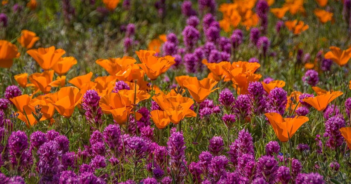 Ela disse que o sul da Califórnia pode não estar florescendo tão maravilhosamente este ano, mas temos uma boa chance de ver impressionantes “seguidores do fogo”, flores nativas que normalmente aparecem após incêndios florestais, como snap do dragão original, Densas florestas de tremoço, Sinos sussurrantes E uma das cores mais aguardadas são rosa escuro, lavanda, branco e amarelo lírio plummer mariposa, Uma espécie endêmica de SoCal. (No Instagram, o naturalista Damon Tighe, residente na Baía de São Francisco, postou alguns.) Imagens deslumbrantes de flores Ele assumiu em 2022.)