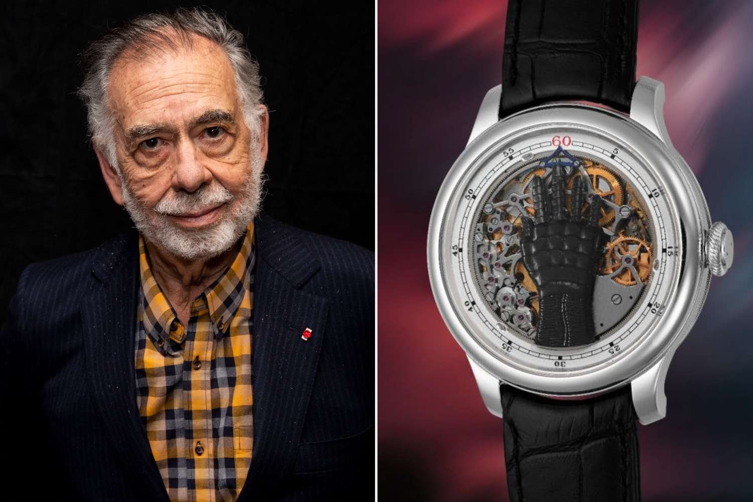 Entre os relógios que em breve estarão à venda está um relógio único que Coppola desenhou em conjunto com o renomado relojoeiro François-Paul Journe. O protótipo FP Journe FFC apresenta uma mão de titânio preto semelhante à humana, cujos dedos e polegar se estendem ou retraem para indicar horas diferentes.