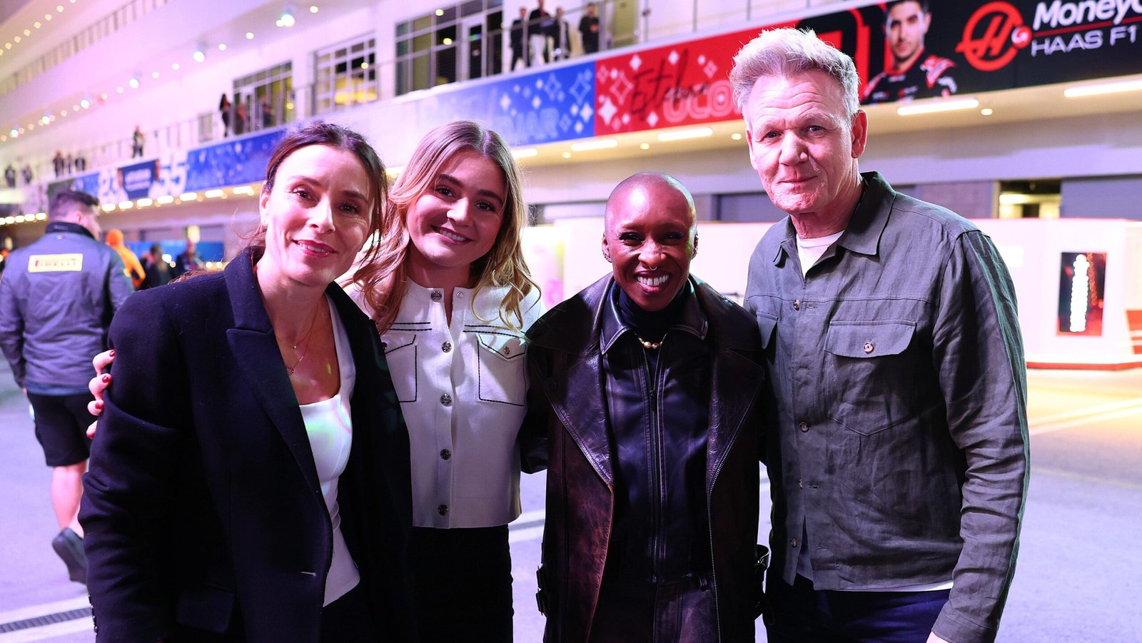 Em fotos separadas não mostradas na postagem de Gordon Ramsay no Instagram, o famoso chef e sua família são vistos se misturando com estrelas no paddock antes do Grande Prêmio de F1 de Las Vegas no Las Vegas Strip Circuit.