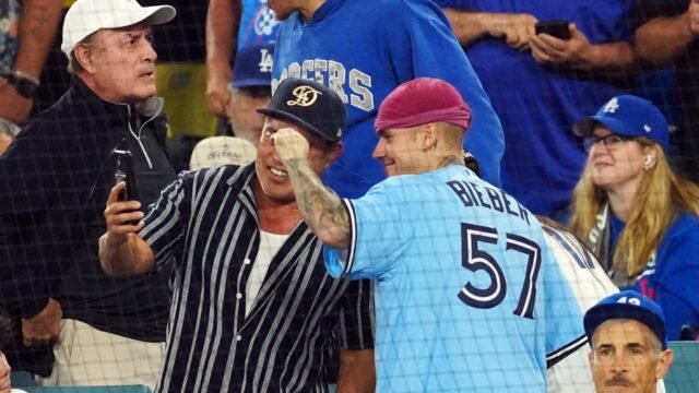 Bieber apareceu com uma camisa dos Blue Jays que tinha seu sobrenome nas costas – só que não era o “Biebs” em questão presa cantor, mas sim o arremessador de Jay, Shane Bieber. Bieber, duas vezes All-Star da Liga Principal de Beisebol e vencedor do Cy Young Award em 2020 com o Cleveland Guardians, foi negociado para Toronto em julho deste ano e rapidamente se tornou parte integrante da rotação dos playoffs dos Jays.