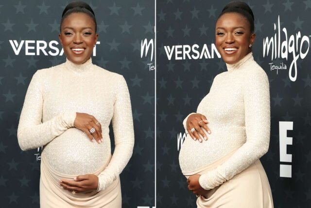 Dois anos e meio depois de dar à luz um menino em 2023, Marshall chegou ao Critics ‘Choice Awards em grande estilo enquanto abraçava sua barriga.
