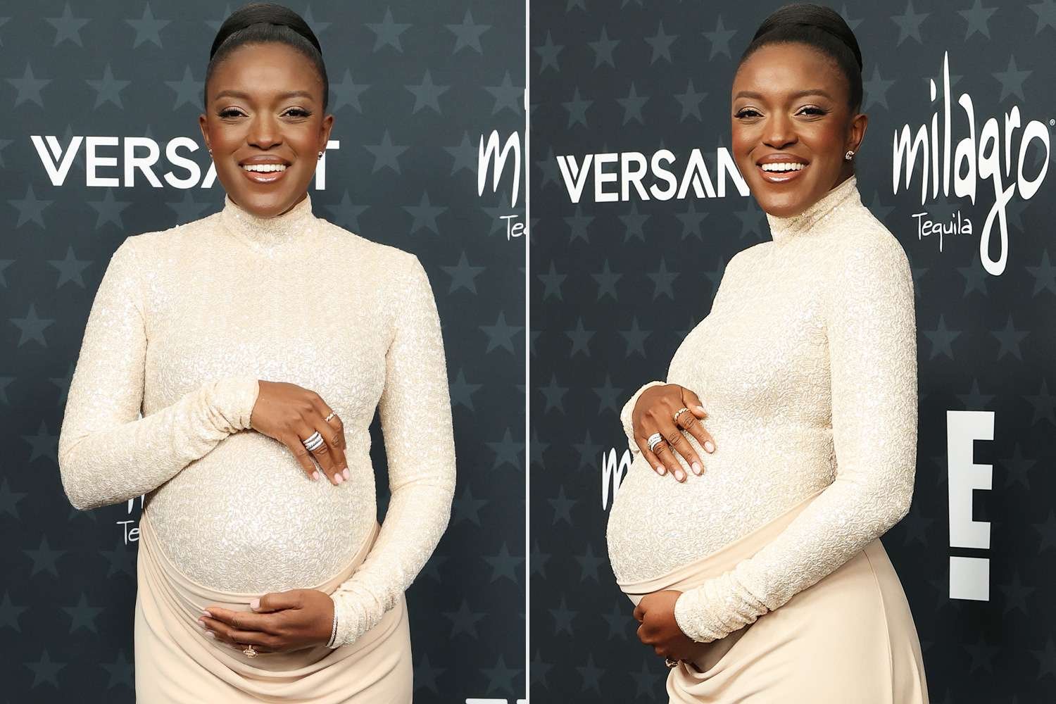• paraíso A atriz Krys Marshall estreou sua barriga no tapete vermelho do Critics’ Choice Awards de 2026 em 4 de janeiro.