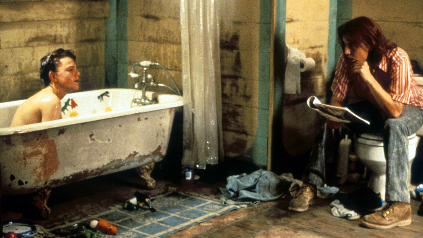 Leonardo DiCaprio está sentado na banheira enquanto Johnny Depp assiste a uma cena de “What’s Eating Gilbert Grape”. (Imagens Paramount/Getty)