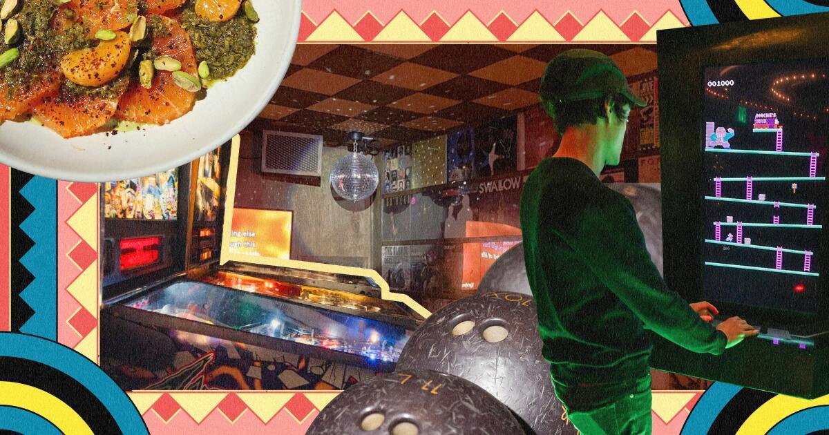 Uma atividade que me faz sentir como uma criança novamente é cantar – bem, mais como cantar – minha música favorita no microfone enquanto estou cercado por meus entes queridos. Um dos lugares de karaokê mais legais de Los Angeles Sala de descanso 86um local nostálgico escondido dentro do Line Hotel de Koreatown, que tem salas privadas de karaokê, DJs ao vivo (e às vezes dançarinos, incluindo… Imitador de Michael Jackson) e um caminhão de sorvete servindo sorvete bêbado e doses de gelatina. “Entrar no bar parece que você entrou em uma máquina do tempo dos anos 1980 com jogos de arcade antigos, pilhas de TVs de tela fixa difusas e fitas cassete adornando as paredes”, diz Danielle Dorsey, editora sênior de culinária do The Times. A sala de descanso 86 não abre antes das 21h, então confira Ao ar livre Para jantar ao pôr do sol. Liderado pelo chef Josiah Citrin, com estrela Michelin (o mesmo cara por trás de um de seus favoritos, Melis), o restaurante na cobertura serve pratos americanos sofisticados, como frango Jidori prensado em tijolos e branzino grelhado – tudo dentro de uma estufa linda e iluminada.
