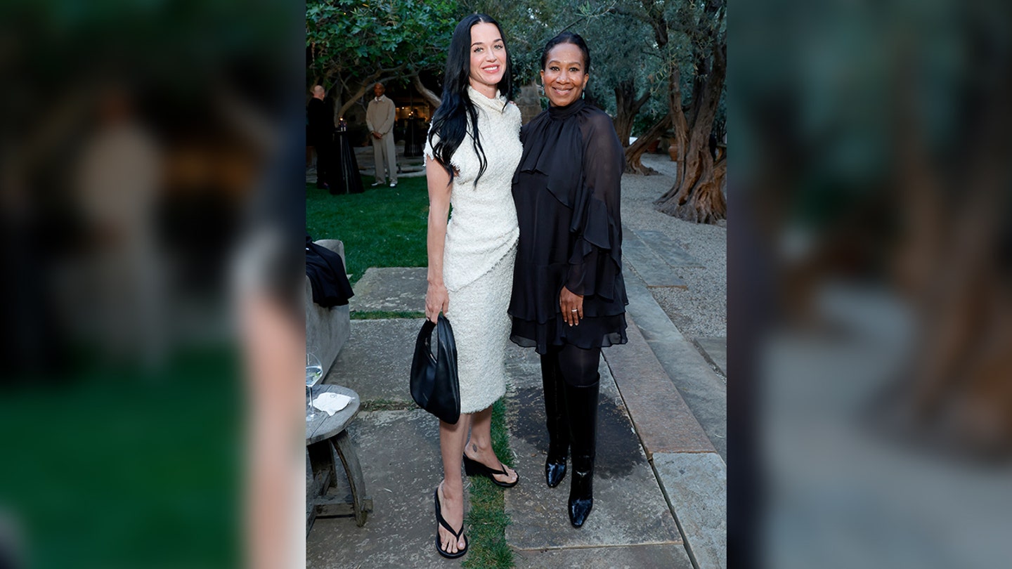 Katy Perry e Nicole Avant posaram para fotos no evento em Montecito, Califórnia. (Stephanie Keenan)