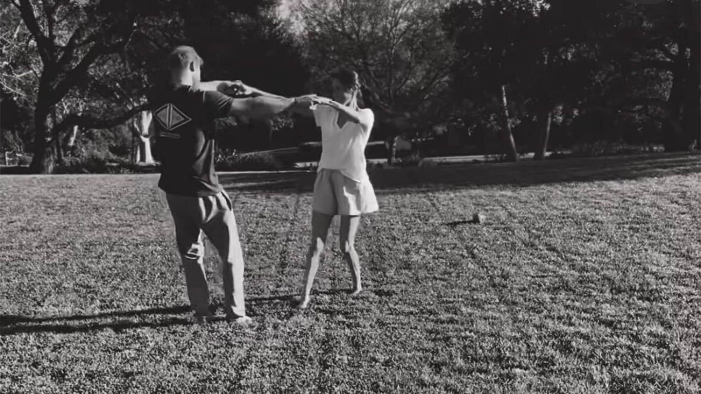 A dupla foi vista no clipe dançando na grama. (Instagram de Meghan Markle)