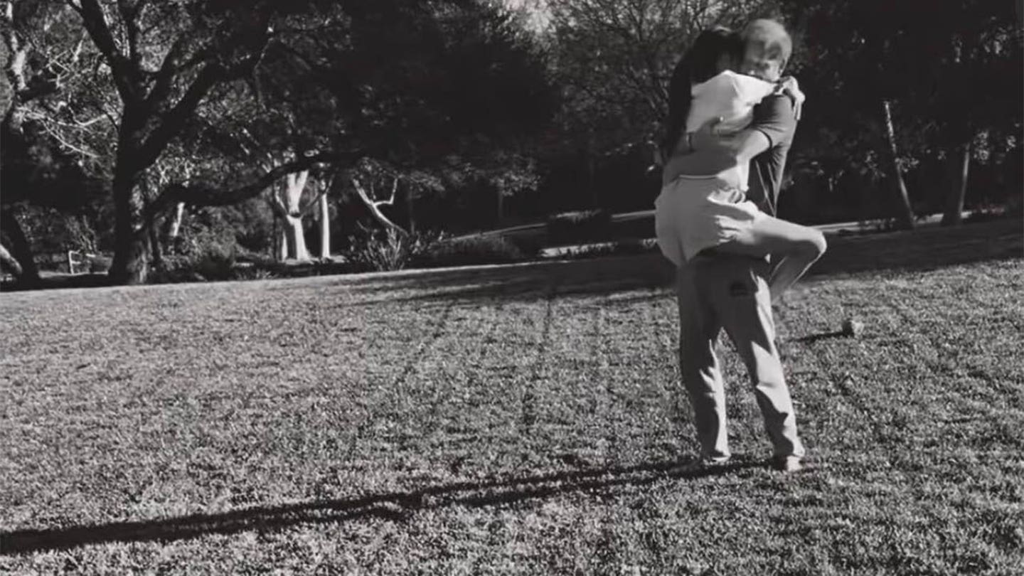 O vídeo foi concluído quando Harry pegou Meghan e colocou as pernas dela em volta da cintura dele. (Instagram de Meghan Markle)