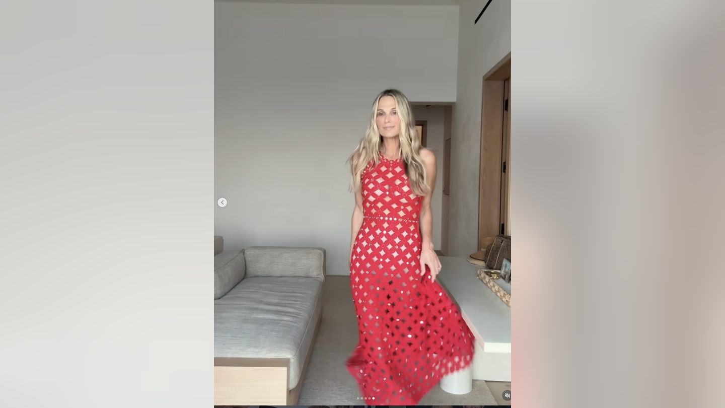 Sims modelou um vestido vermelho sem mangas de uma só vez. (Instagram de Molly Sims)