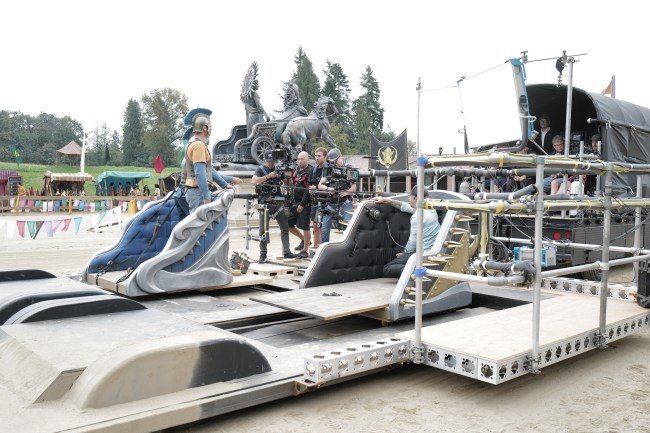 Nos bastidores das corridas de bigas da segunda temporada de “Percy Jackson”.