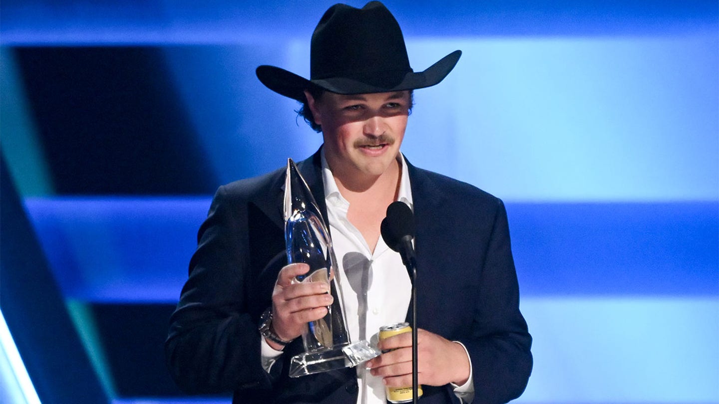Zach Tubb ganhou o Prêmio CMA de Novo Artista do Ano. Ele acidentalmente trouxe uma lata de cerveja para o teatro. (Michael Buckner/Billboard via Getty Images)