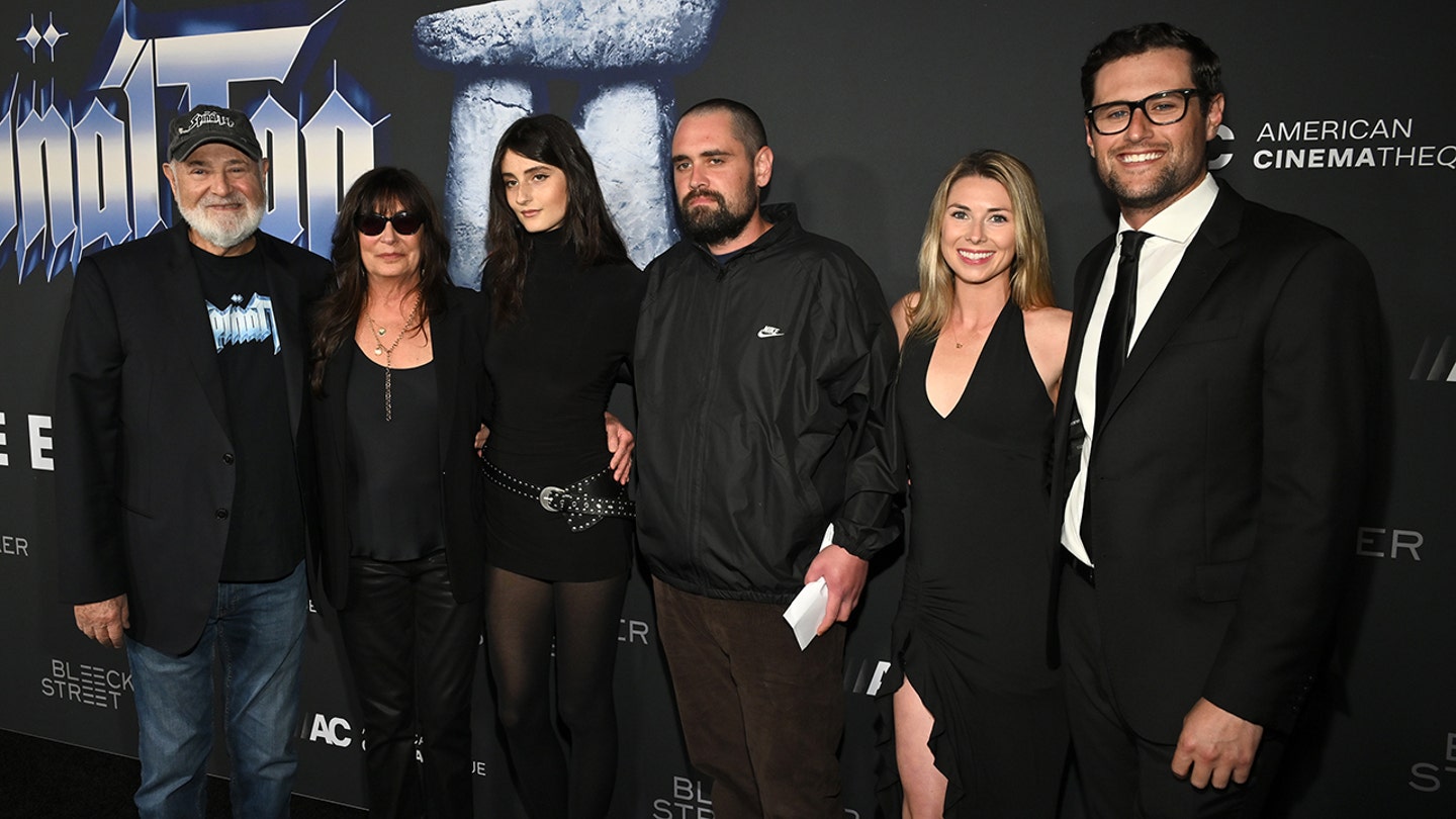 Rob Reiner, Michelle Reiner, Romy Reiner, Nick Reiner, Maria Gilfillan e Jake Reiner na estreia de Spinal Tap II: The End Continues em Los Angeles, realizada no Egyptian Theatre em 9 de setembro de 2025 em Los Angeles, Califórnia. (Michael Buckner/Variedade via Getty Images)