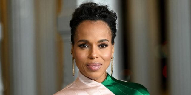 Kerry Washington exalava o antigo glamour de Hollywood na estreia de seu último filme, Netflix Wake Up Dead Man: um mistério do crime com facas. Ela caminhou no tapete vermelho em Los Angeles na segunda-feira ao lado de seus colegas de elenco Josh Brolin e Mila Kunis, escolhendo um vestido marrom sem alças.