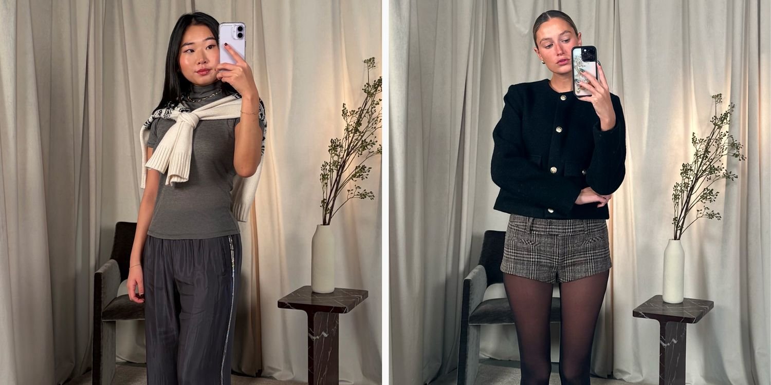 “Meu estilo de Natal geralmente é maximalista (pense em peles artificiais, glitter, vermelhos brilhantes e rosas), mas quando vi esses queridinhos micro shorts verificados Fui inspirado por Rumored para seguir uma direção mais sutil e chique. Eu combinei ela com meu amante Casaco de lã sem gola com padrão marmeloisso é enganosamente quente e tem a silhueta perfeita cortada nos quadris. Calzedônias Linha Soft Conforto são as únicas meias que usarei – fiel ao seu nome, são macias, elásticas e não coçam ou sufocam. Para completar o look escolhi preto J.Crew slingback Comprei na Black Friday. Os detalhes de bico fino e amarração dão a eles uma vibe sexy do início dos anos 2000 e eu já sei que vou usá-los até a morte.” – Jordan Julian, editor