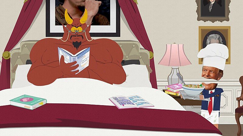 Meses depois de a segunda administração Trump ter tomado forma e a enxurrada de ordens executivas presidenciais ter começado a criar o efeito inibidor de um potencial autoritarismo, Parque Sul começou destemidamente com um momento quase inacreditavelmente chocante. Um ator lutou pelo deserto retratando o Presidente dos Estados Unidos, nu e bronzeado, tentando desesperadamente libertar os eleitores americanos da tentação, ouvindo uma mensagem publicitária vinda de seu minúsculo pênis falante. meses depois, Parque SulAgora parece que a última campanha do Daily Mail terminará com o líder do mundo livre se tornando o pai do Anticristo através do seu caso extraconjugal com Satanás. No meio, Parque SulO retrato direto do cabeça esvoaçante Donald Trump – irritado, infiel, egoísta e enganador para com todos – tentou secretamente abortar o seu filho ainda não nascido, abrigou o seu vice-presidente no Quarto Lincoln e depois manipulou os meios de comunicação para acreditar que a filmagem do encontro era uma mera invenção.