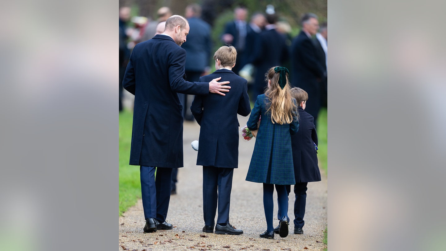 O Príncipe William e seus filhos participam da missa da manhã de Natal na Igreja de Sandringham em 25 de dezembro de 2024, em Sandringham, Norfolk. (Samir Hussein/WireImage/Getty Images)